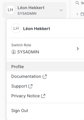 Om je ‘default role’ te checken ga je in Snowflake naar je account en klik je op ‘Profile’. Ergens halverwege het scherm vind je de instelling ‘Default role & warehouse’. Pas deze eventueel aan.