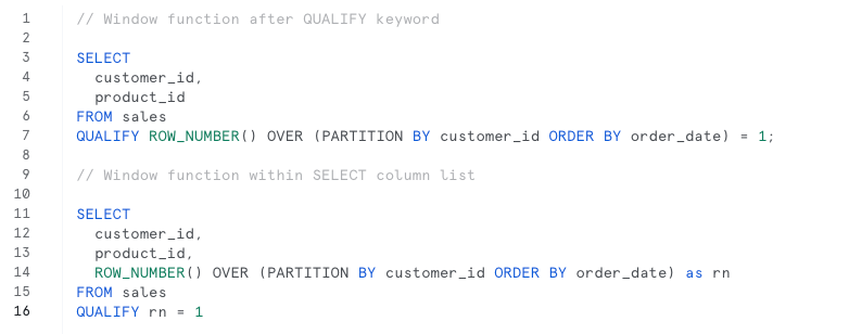 Het grote voordeel van QUALIFY is de overzichtelijkheid van je query. Normaal gesproken zou je met subqueries of CTE’s moeten werken om hetzelfde resultaat te bereiken. Nu hoef je enkel een extra keyword aan je query toe te voegen met een conditie waar je op wilt filteren.
