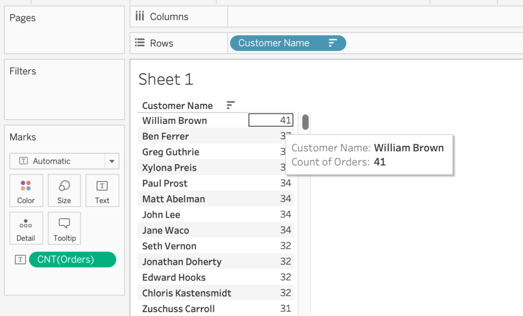 Suppose you have a dataset containing customer purchase information, and you want to segment your customers into different groups based on their purchase frequency. Here’s how you can achieve this using the INDEX() function in Tableau: