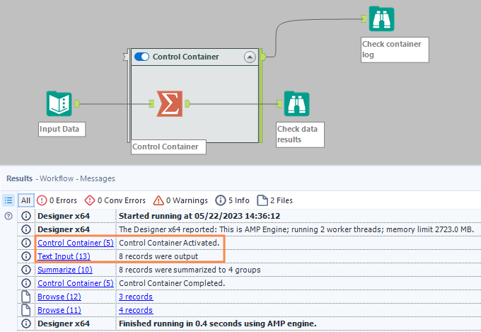 There is only one prerequisite for using Control Containers in Alteryx Designer 2023.1: the AMP engine (Alteryx Multi-threaded Processing) needs to be enabled. For Alteryx Designer 2023.1, AMP is enabled by default.