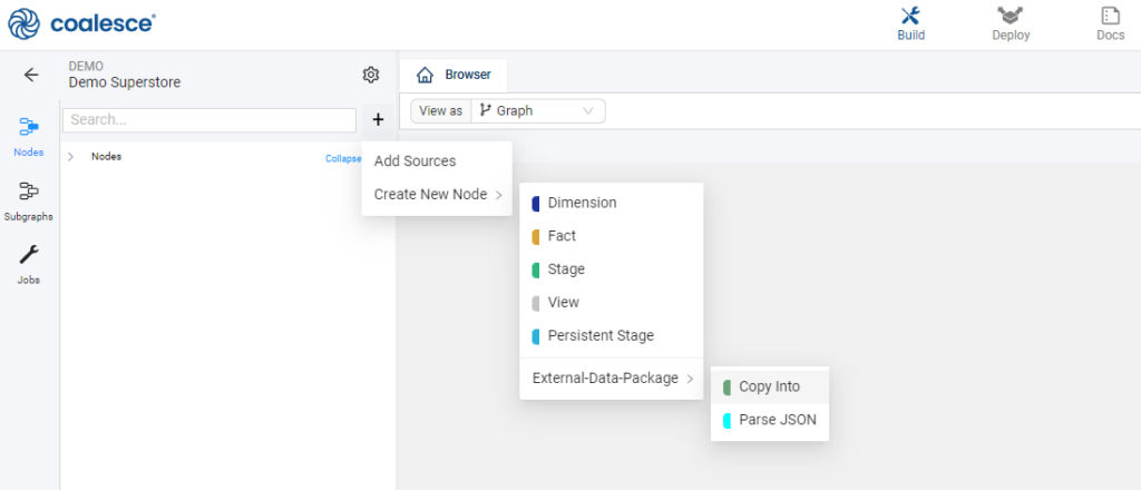 For this use case, we'll focus on the CopyInto node. Read here how to Install and Manage Coalesce's packages.