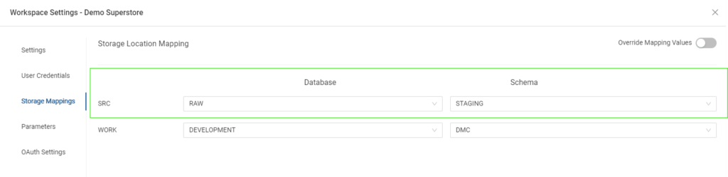 - Secondly, I need to make sure I created a Storage Location in Coalesce, which I'll name SRC (Source), that points to the database (RAW) and schema (STAGING) where the SUPERSTORE internal stage resides: