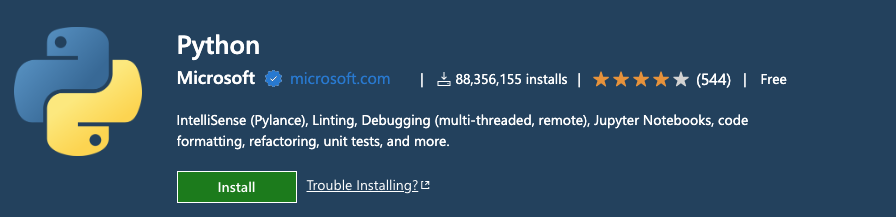Python: If you are using Python for your serverless application development, install the Python extension to benefit from features like linting, code formatting, and Python-specific debugging.
